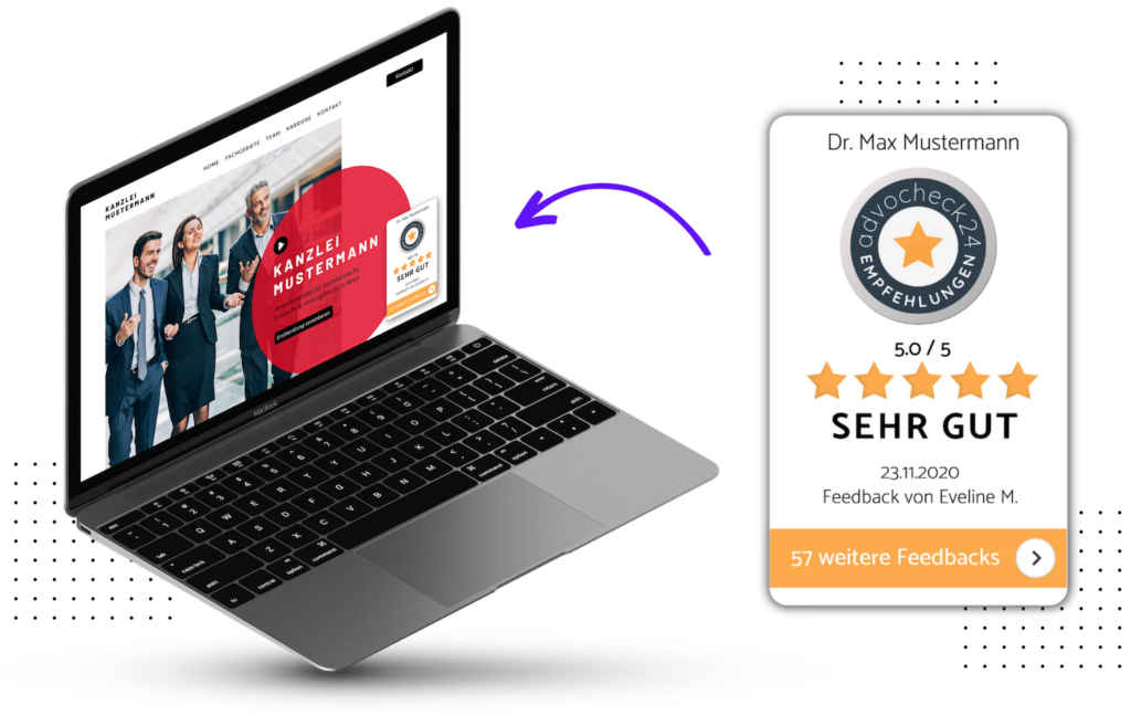 Bewertungen direkt auf Ihrer Kanzlei Webseite anzeigen