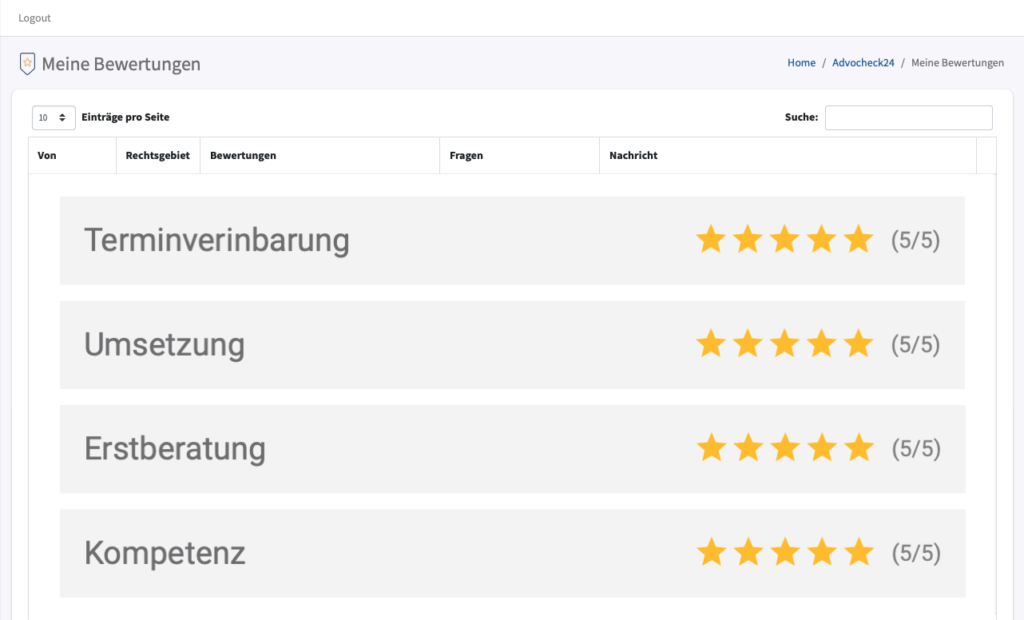 Laden Sie Ihre Klienten kinderleicht zu einer Feedbackumfrage mit advocheck24 ein und erhalten Sie so proaktiv neue authentische Empfehlungen von Ihren zufriedenen Klienten.